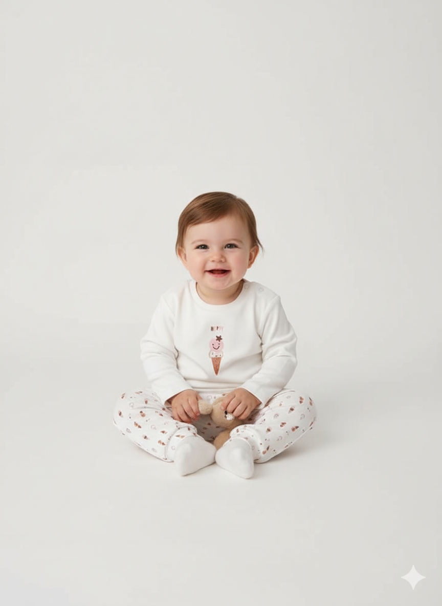 Yumuşacık dokusuyla minik prensesinizin cildine nazikçe dokunan bu kız bebek takımı, hem günlük kullanım hem de özel günler için ideal bir seçimdir. Mevsimlik pamuklu kumaşı sayesinde terletmez ve bebeğinizin gün boyu rahat etmesini sağlar. Modern ve şık tasarımıyla fotoğraf çekimlerinden aile ziyaretlerine kadar her ortamda zarif bir görünüm sunar.